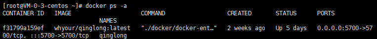 连接ssh,执行 docker ps -a