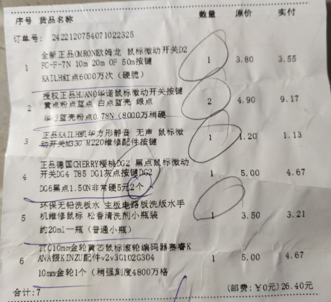 左右键微动使用的是华诺蓝粉(手感较硬)---左右键推荐使用凯华黑曼巴GM8.0
